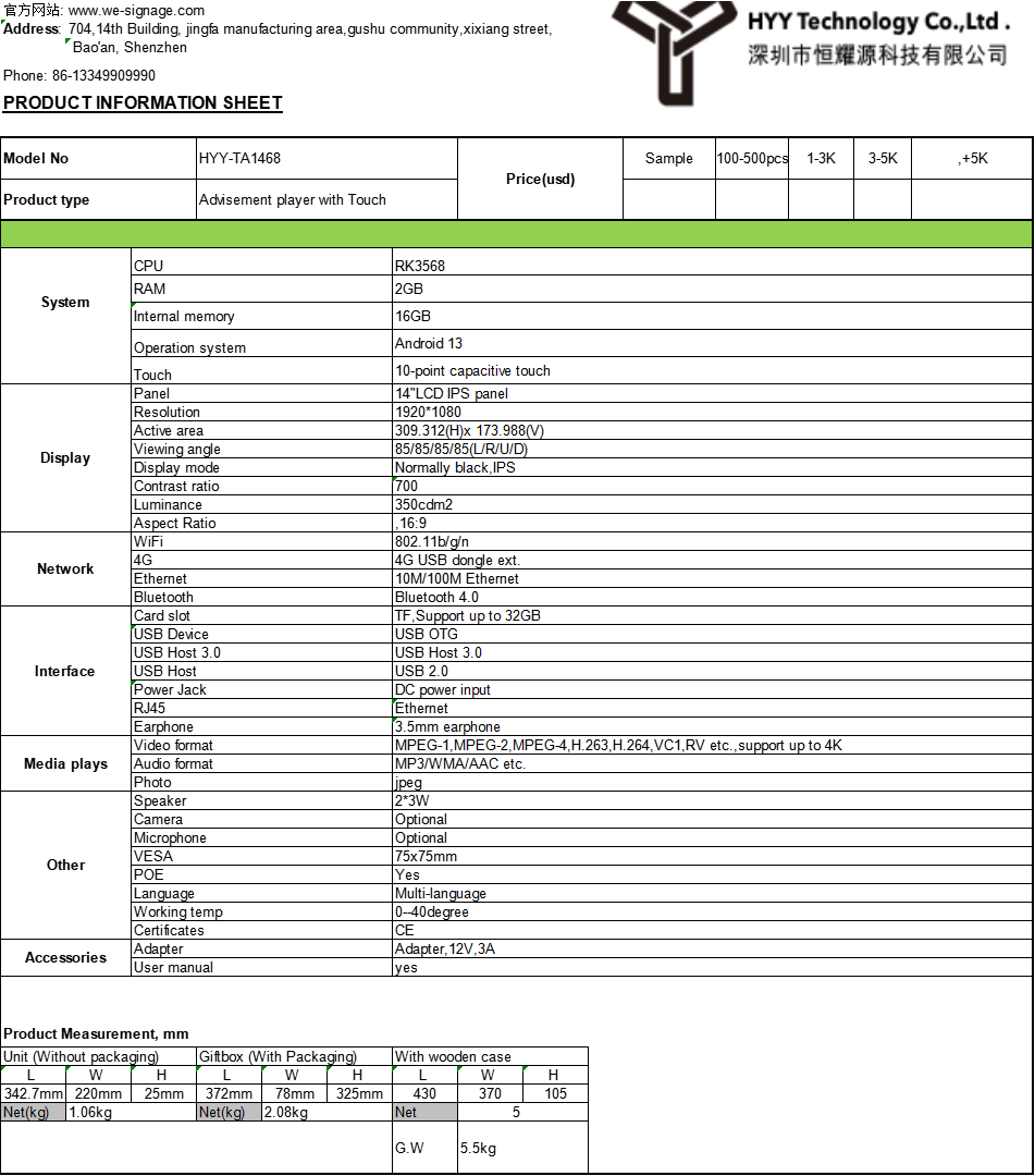 1. Model: HYY-TA1468