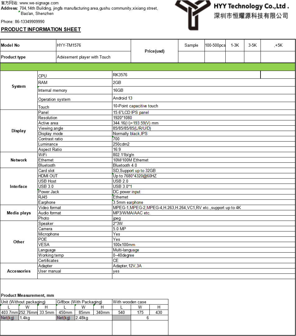 1. Model: HYY-TM1576