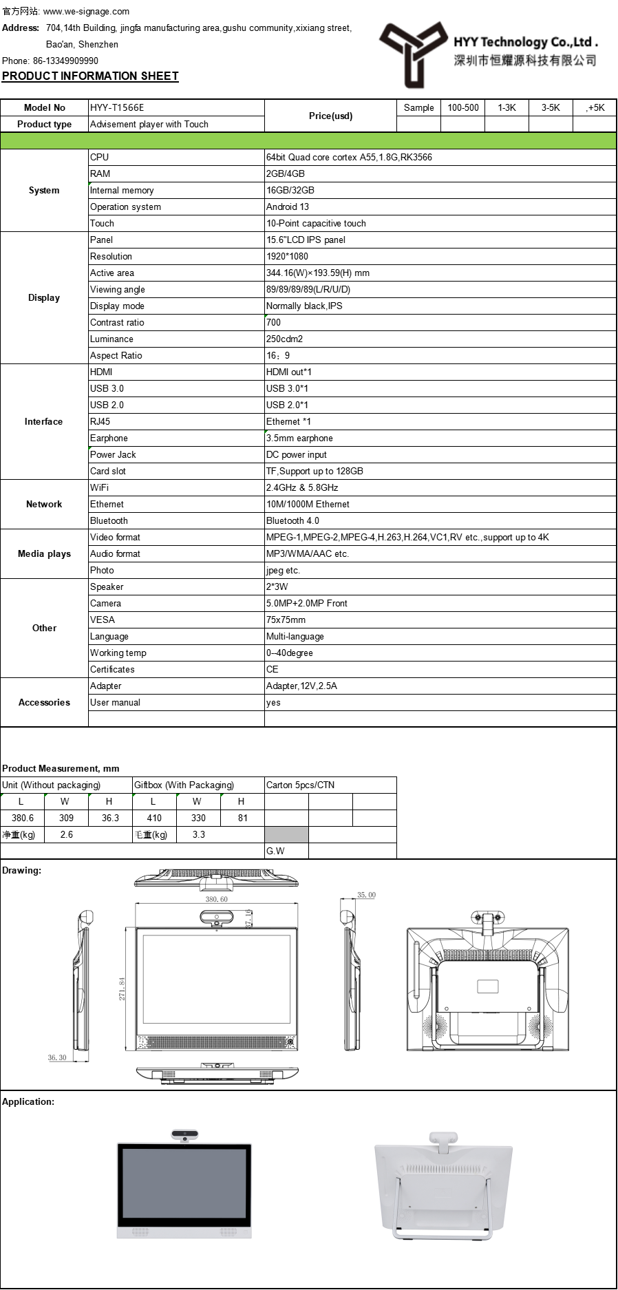 Specifications of the 15.6 inch Table Stand White LCD Touch Monitor With Double Camera: