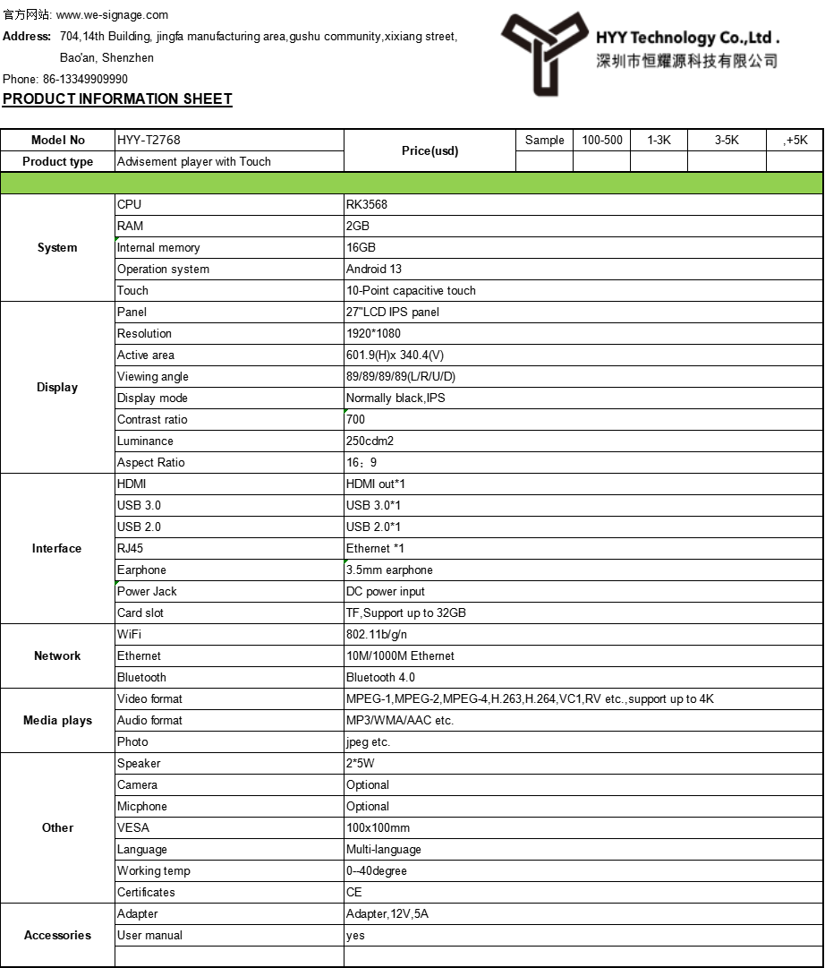 1. Model: HYY-T2768