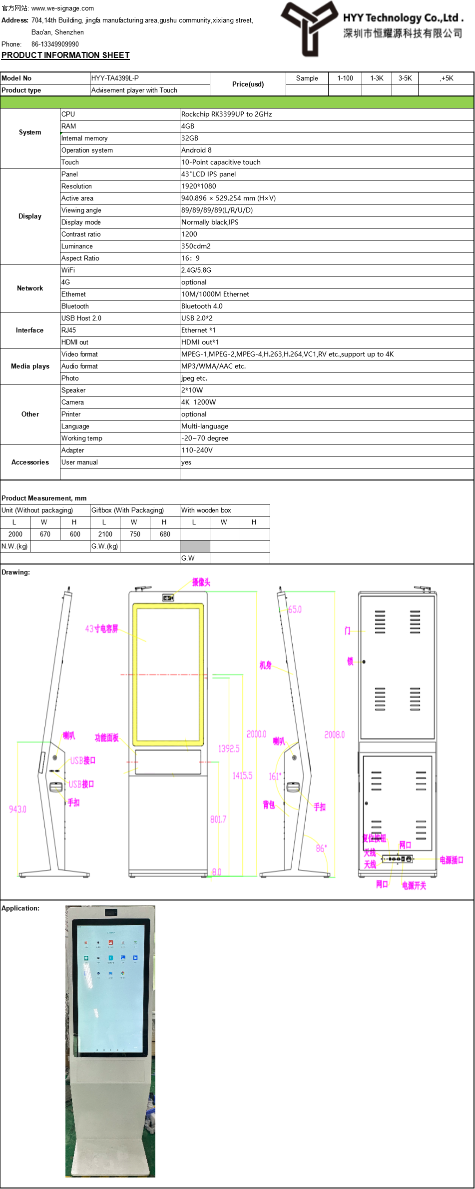 1. Model: HYY-TA4399L-P