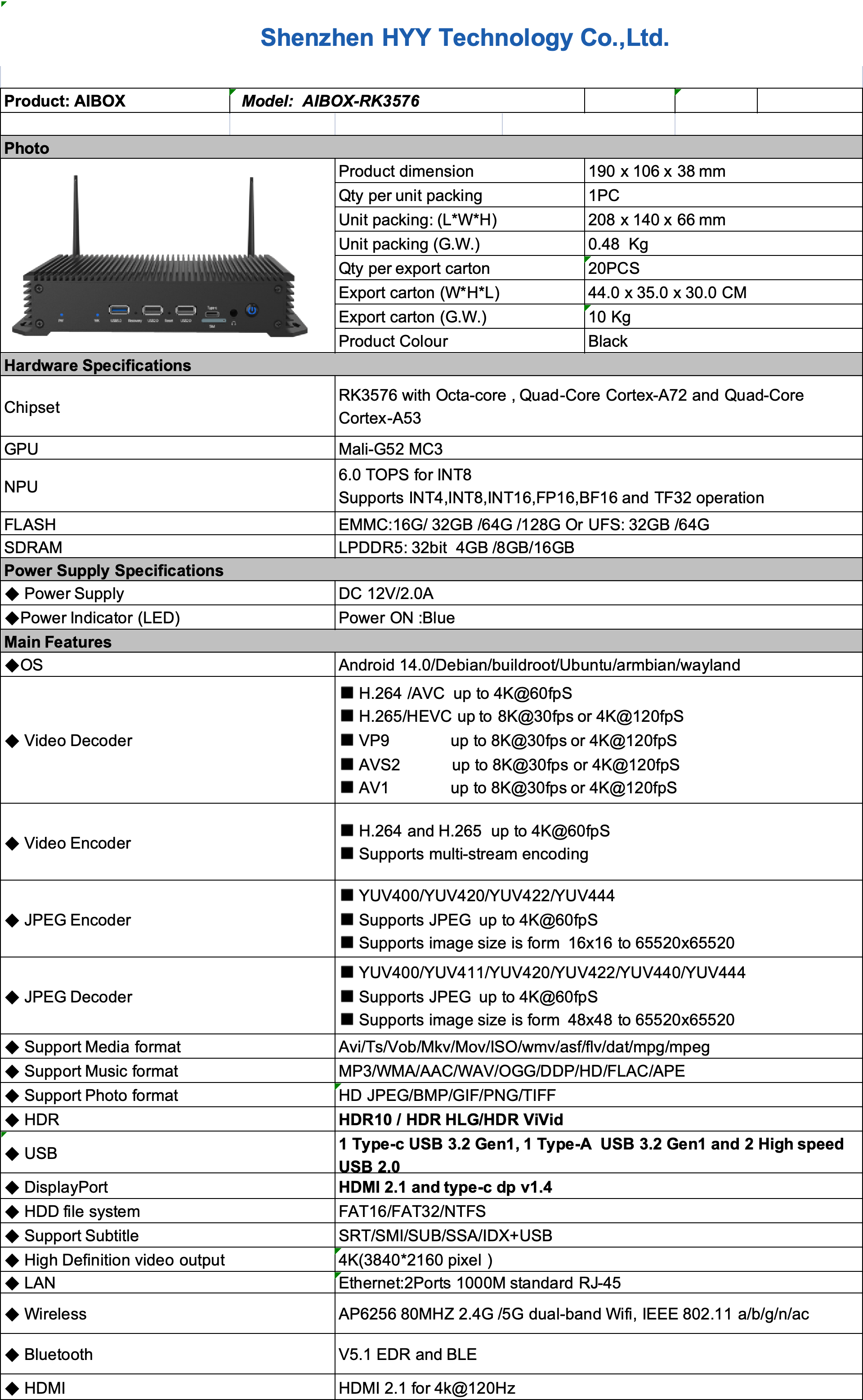 1. Model: HYY-AIBOX-RK3576